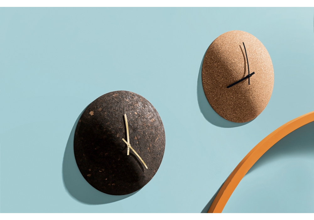 Kortime designed by Smith Matthias for Discipline is a wall clock in natural cork and black hands or in black cork with brass hands.