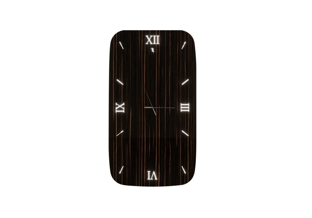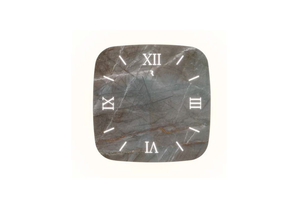 Nautilus designed by Tulczinsky for Reflex Angelo is a clock in MarmoReflex or LegnoReflex, titanium hands and sandblasted white numbers. Optional LED backlighting. Can be combined with a shaped mirror in smoked mirrored glass.