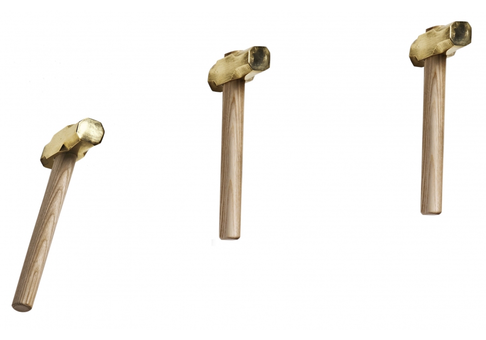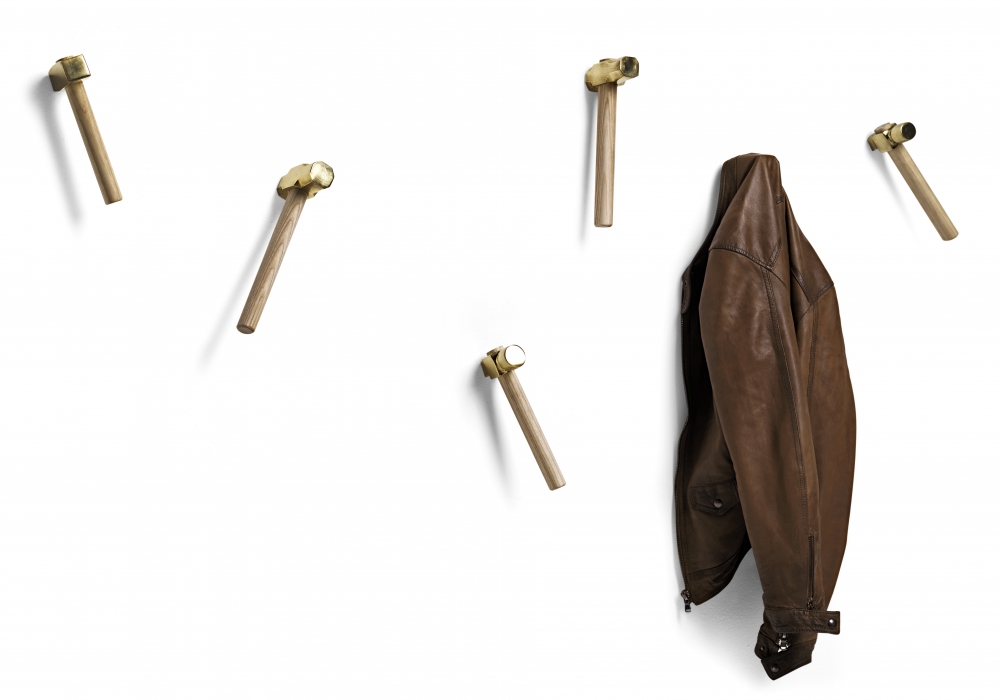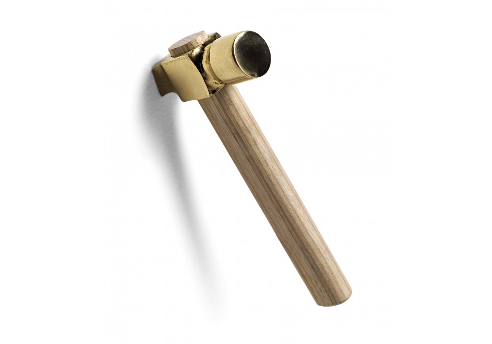 Bastaaa designed by Marcantonio for Mogg is a kit of 3 coat hanger hammers with handle in natural olive ash and tip in cast brass in matt satin finish.