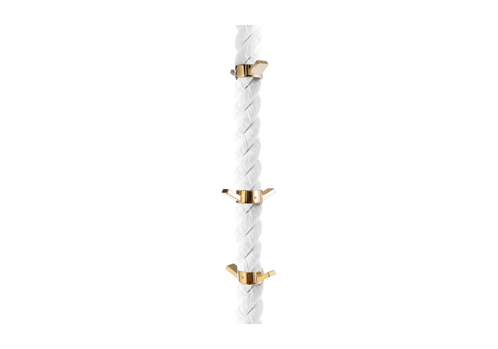 La Cima designed by Lapo Ciatti for Opinion Ciatti is a wall coat hanger made with metal bracket and rings and braided nautical rope. Available in different finishes.