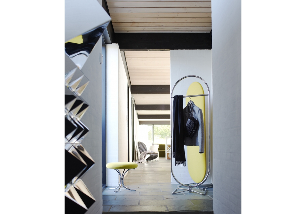 System 1-2-3 designed Verner Panton for Verpan is a clothing rack with chromed steel structure and steel plated 360° rotating butterfly base.