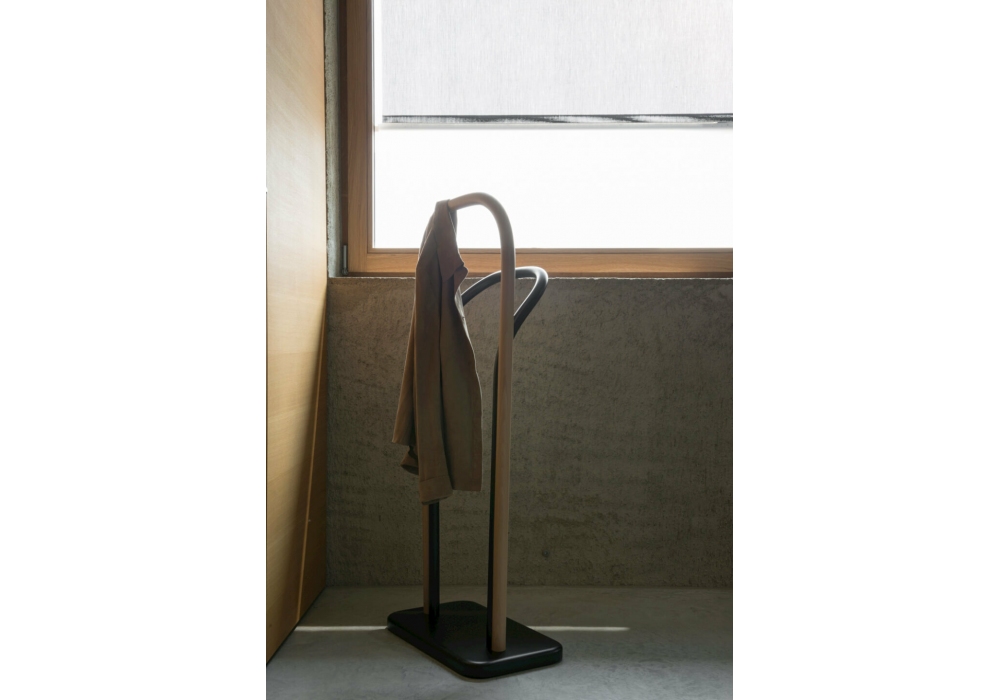 Arch Clothes Valet designed by Front for Gebrüder Thonet Vienna is a valet stand in two-tone bent beech: black and natural beech.