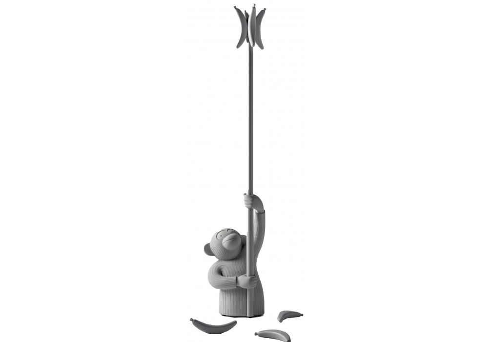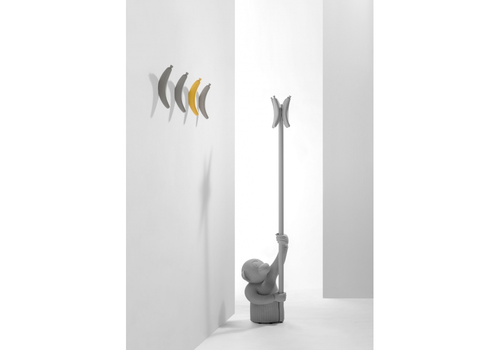 Monkey designed by Jaime Hayon for BD Barcelona is a coat hanger the base is in concrete, the pole and the banana in solid ash, is available in black or gray.