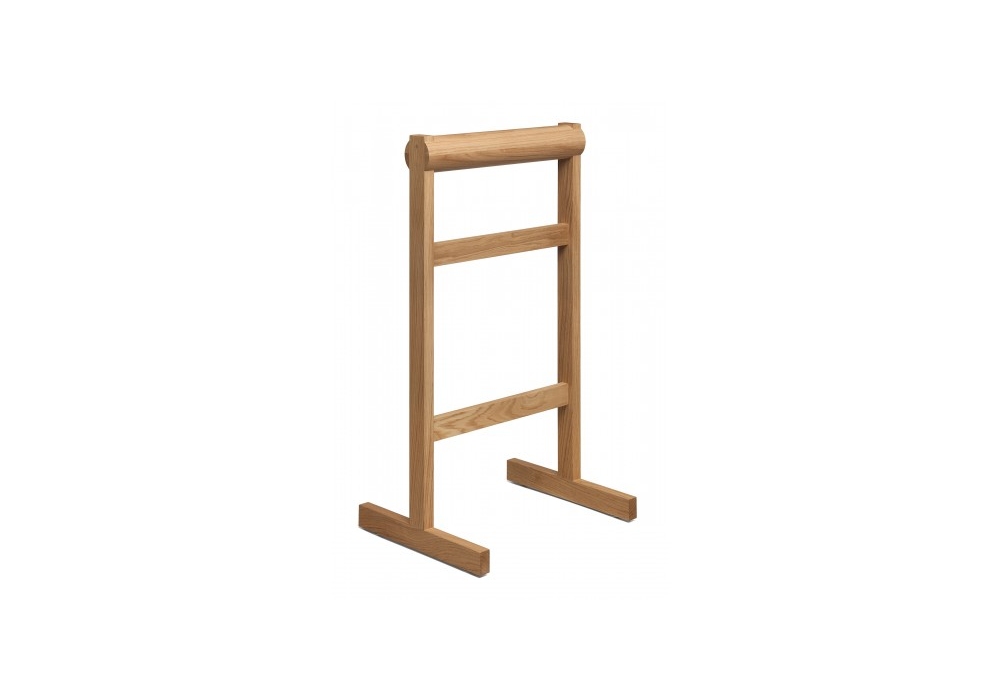 Gamar designed by Spacon & X for E15 is a valet stand with wooden structure, made of transparent or black lacquered European oak.