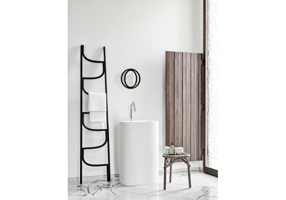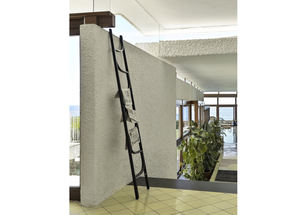 Ladder designed by Charlie Styrbjorn Nilsson for Gebrüder Thonet Vienna is a decorative element in curved ash, with the function of valet stand, available in different finishes and sizes.
