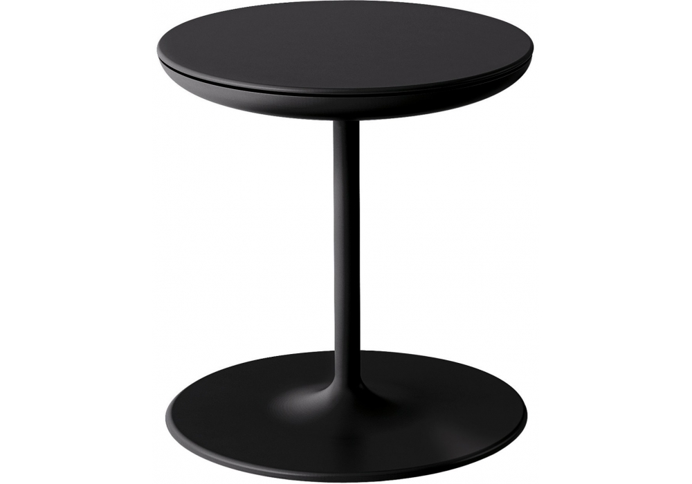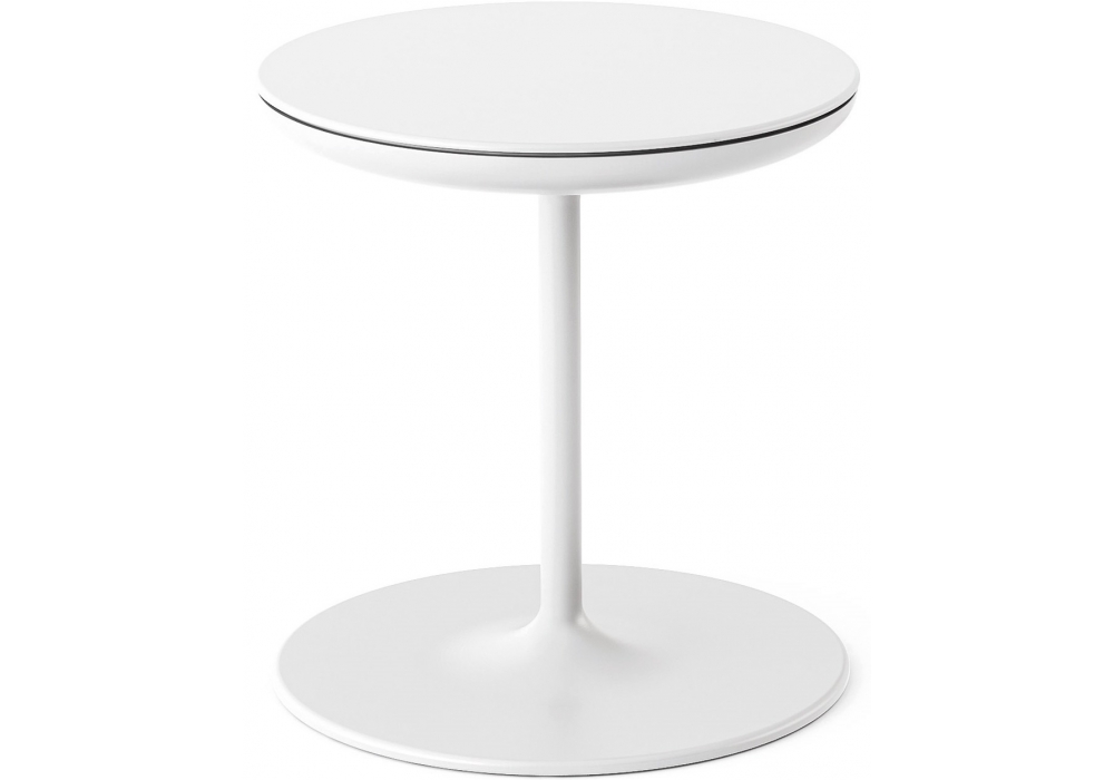 632 Toi designed by Salvatore Indriolo for Zanotta is small table with stiff polyurethane frame. Aluminumcovered plywood top. Varnish in black, white or red. Organizer compartment revealed by rotating table top 360°.