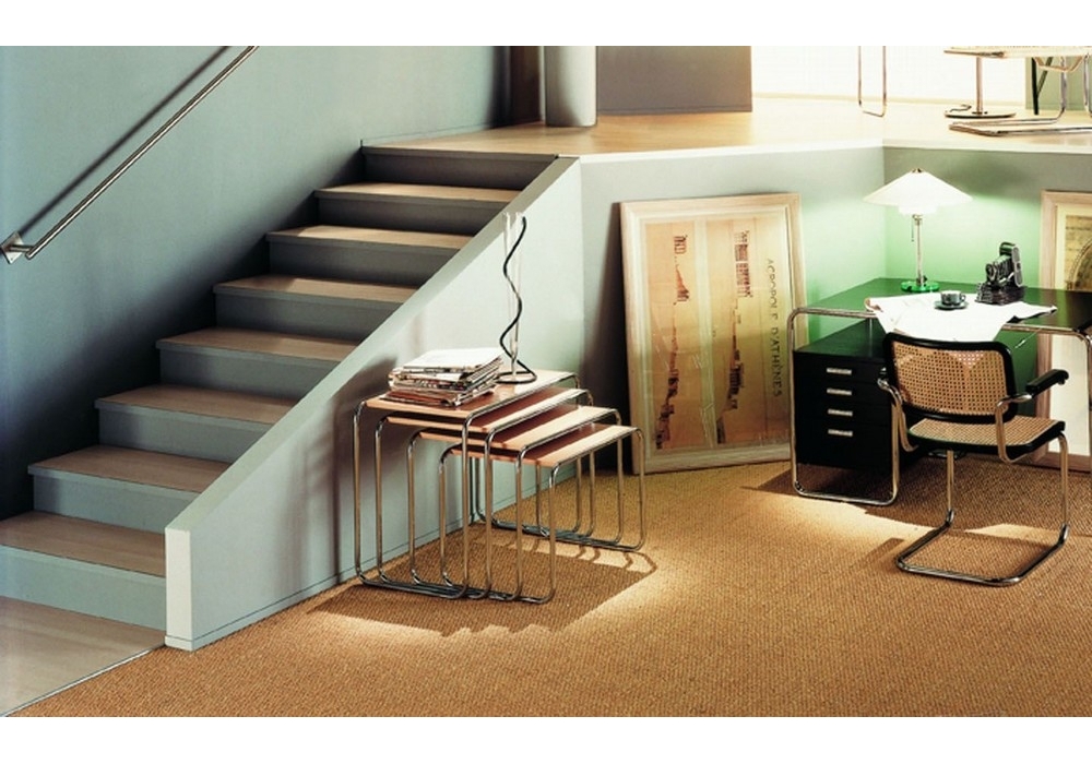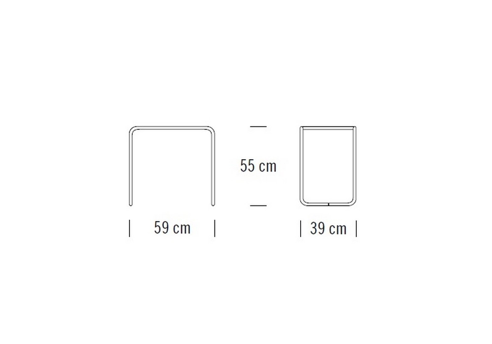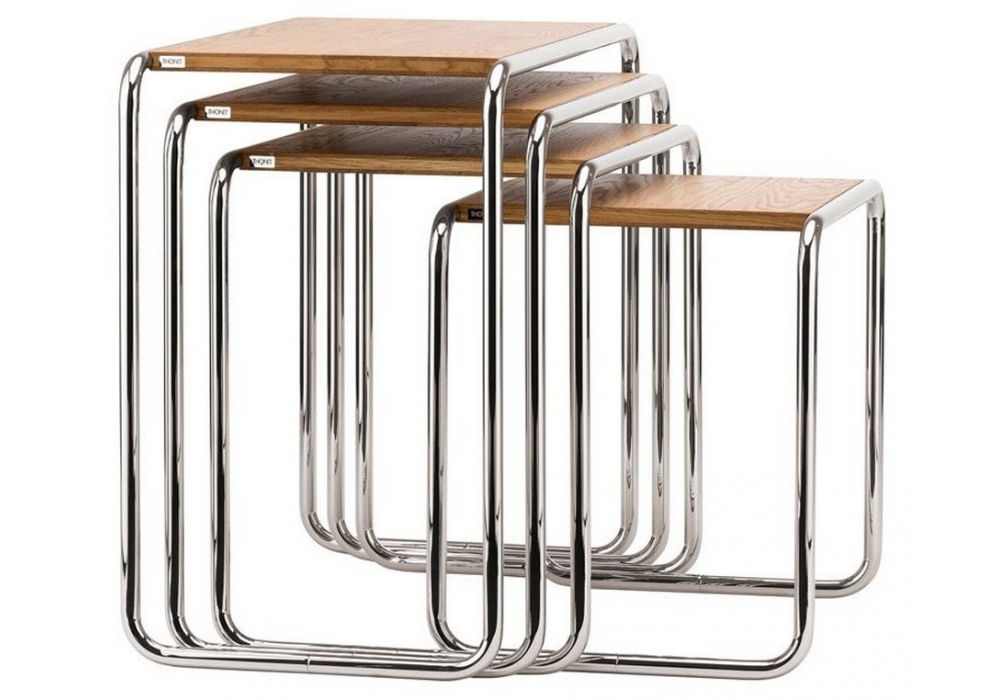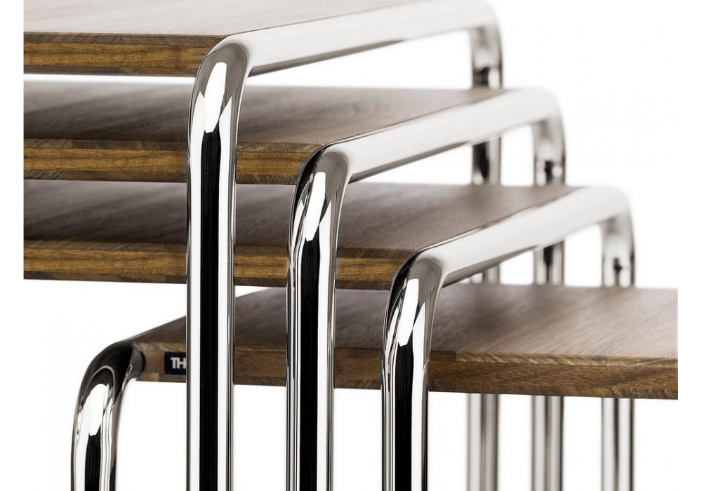 B 9 designed by Marcel Breuer for Thonet is a side table with tubular steel structure, chromed or painted in different colours. Top in MDF, beech or glass. Available in different finishes and sizes.