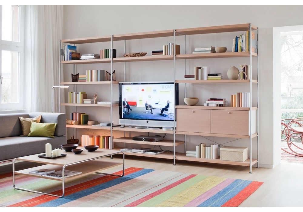 B 20 designed by Thonet is a coffee table with chromed or painted tubular steel structure in different colors. MDF top in different finishes. The coffee table is also available in two sizes and with or without additional shelf.