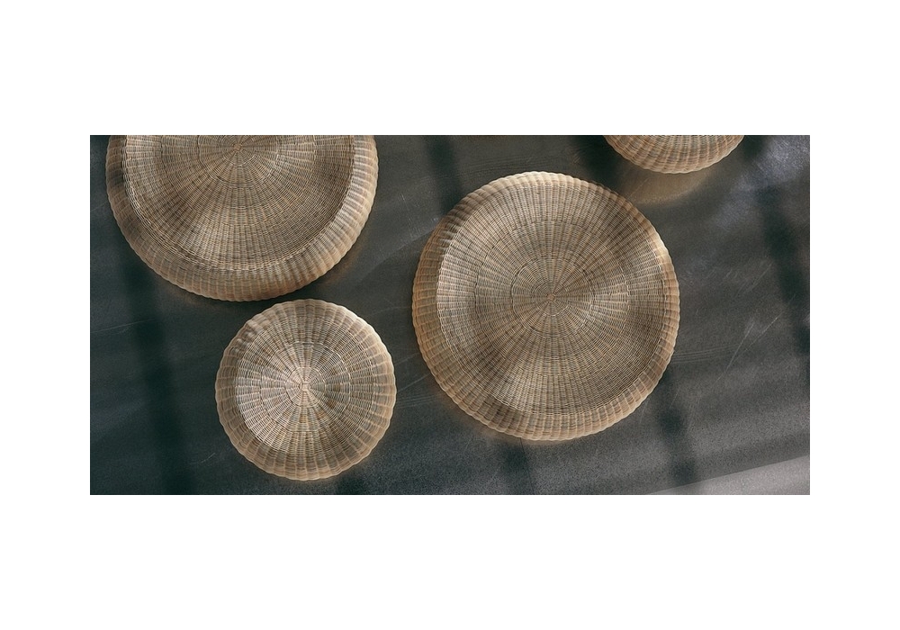 Bolla 15 designed by Michael Sodeau for Gervasoni is a coffee table/stool made of natural melange wicker or lacquered wicker in different finishes.
