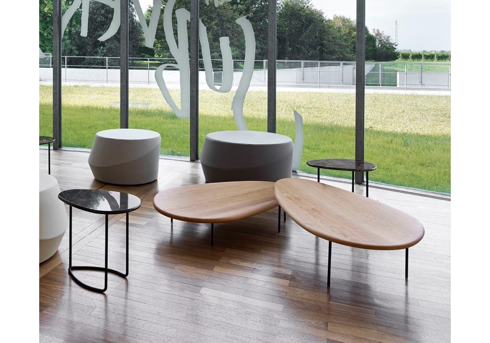 Lily designed by Marc Thorpe for Casamania & Horm is a coffee table made with black painted metal structure and marble or solid wood top. Available in different finishes and dimensions.