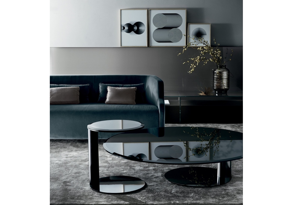 Oto Mini designed by Oscar & Gabriele Buratti for Gallotti&Radice is a coffee table with bevelled glass top. Bright lacquered metal structure. Available in the colours black, blue grey and liquorice in the bright or satin version.