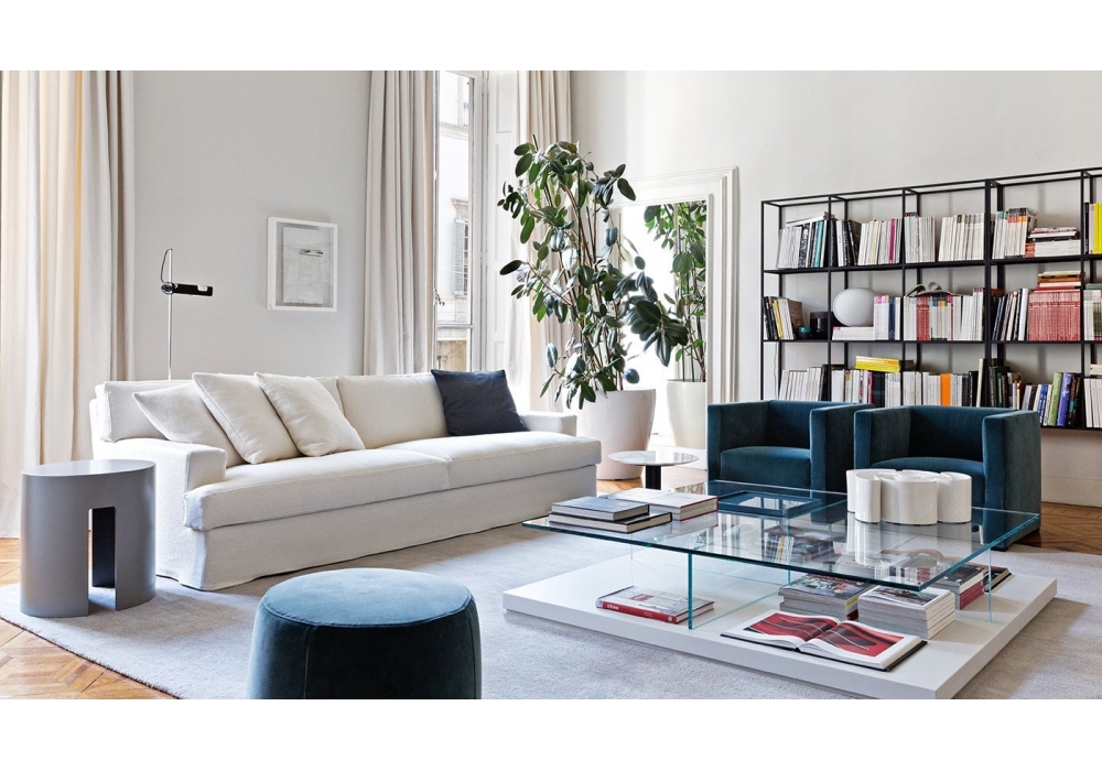 Cluny Crystal designed by Andrea Parisio for Meridiani is a low table with top and cross in “float ultralight” tempered crystal