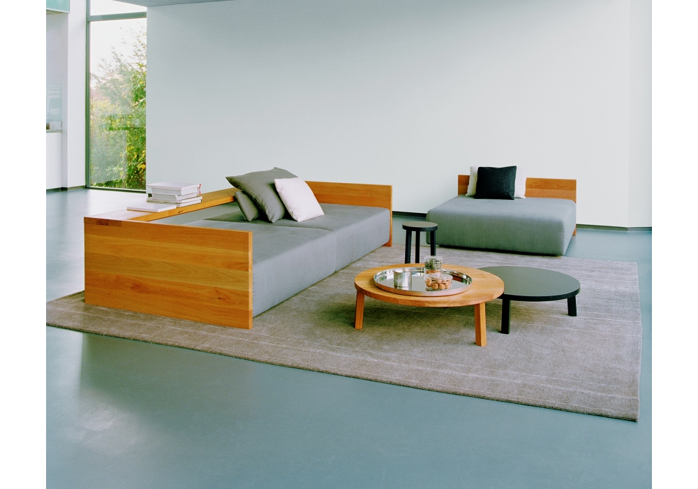 PA05 Leila designed by Philippe Allaeys for E15 is a wooden coffee table. Leila with its simple round form, offers a compelling contrast to the rectangular structure of sofas and chairs and can be positioned in overlapping thanks to the different heights offered. Available in more finishes and sizes.