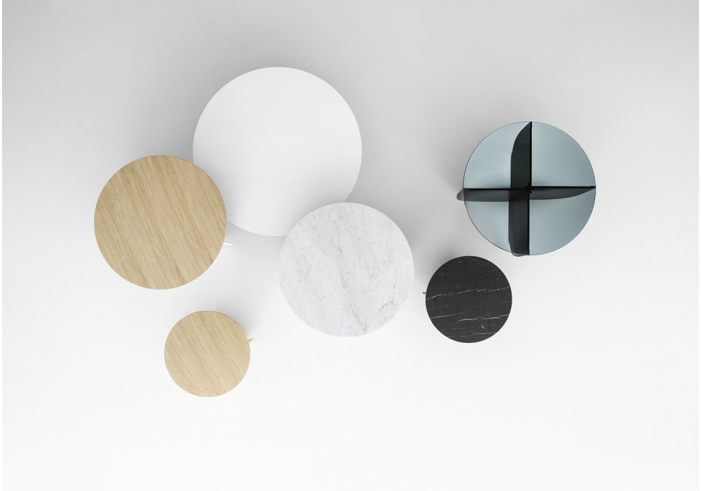 Mil designed by Büro Famos for laCividina is a beautiful coffee table available in 3 different dimensions with top-table in multiple finishes. Mil is a coffee table made with prestigious materials and a simple construction concept. Four wooden parts interlock to form a solid, compact base for the round top, which can be made of wood, marble or glass.