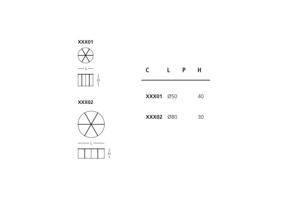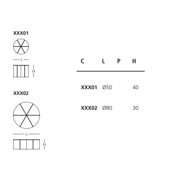 | Dimensions | Ø 50 cm x H 40 cm; Ø 80 cm x H 30 cm. |