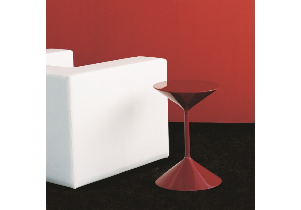 631 Tempo designed by Prospero Rasulo for Zanotta is small table with stiff polyurethane frame and steel stem. Varnish in black, white or red.