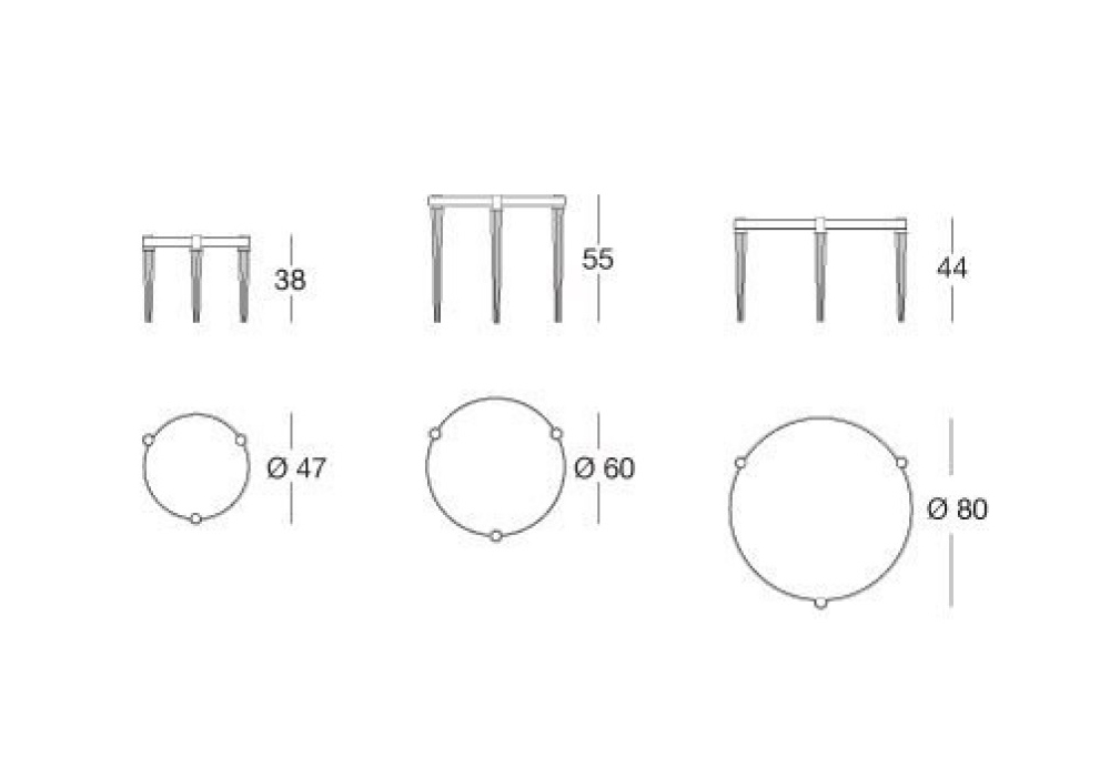 | Dimensions | Ø 47 x H 38 cm; Ø 60 x H 55 cm; Ø 80 x H 44 cm. |