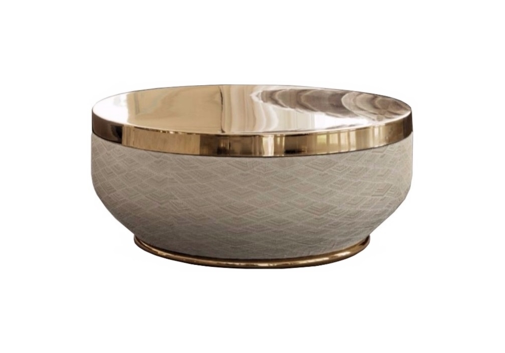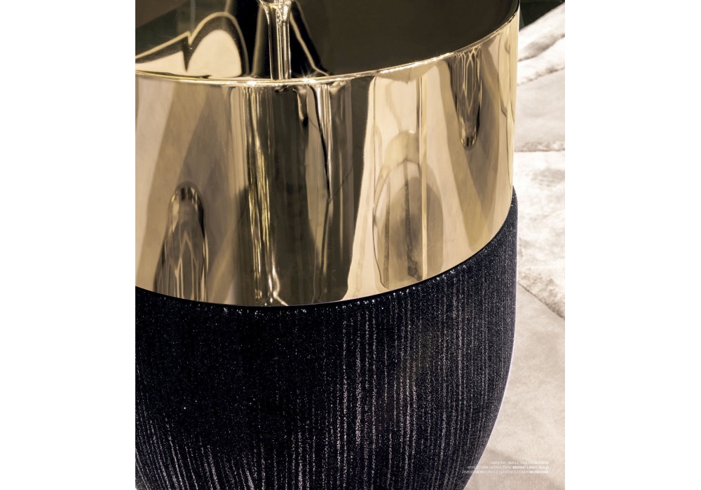 Godwin designed by Giuseppe Iasparra for Longhi is an occasional table with structure in fiberglass covered in leather and top in metal. It is possible to add the shaped tray as an accessory. Available in different finishes and dimensions.