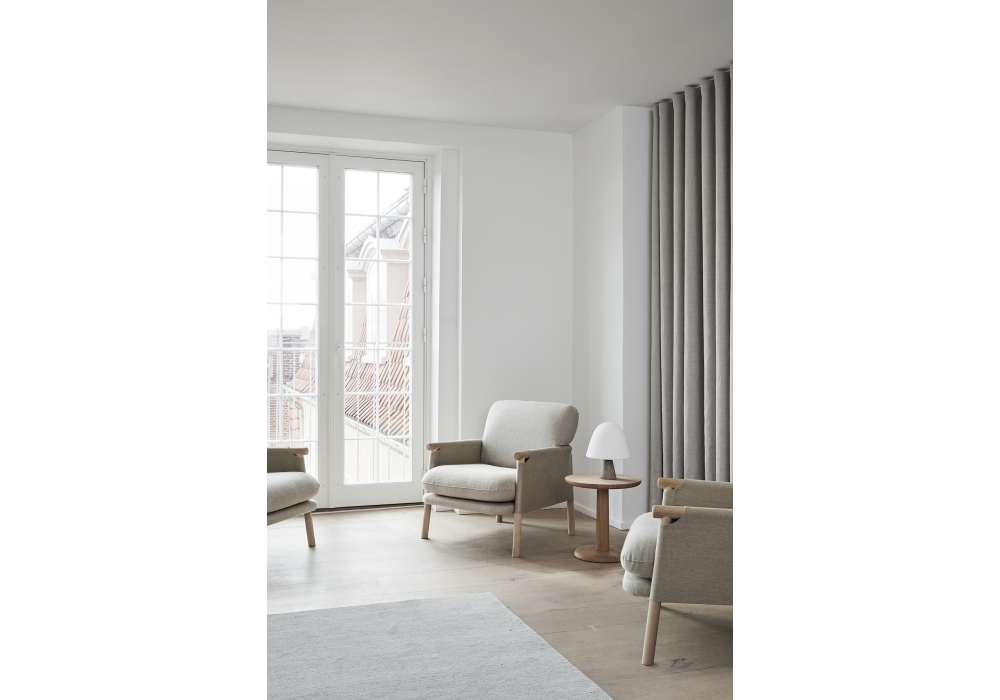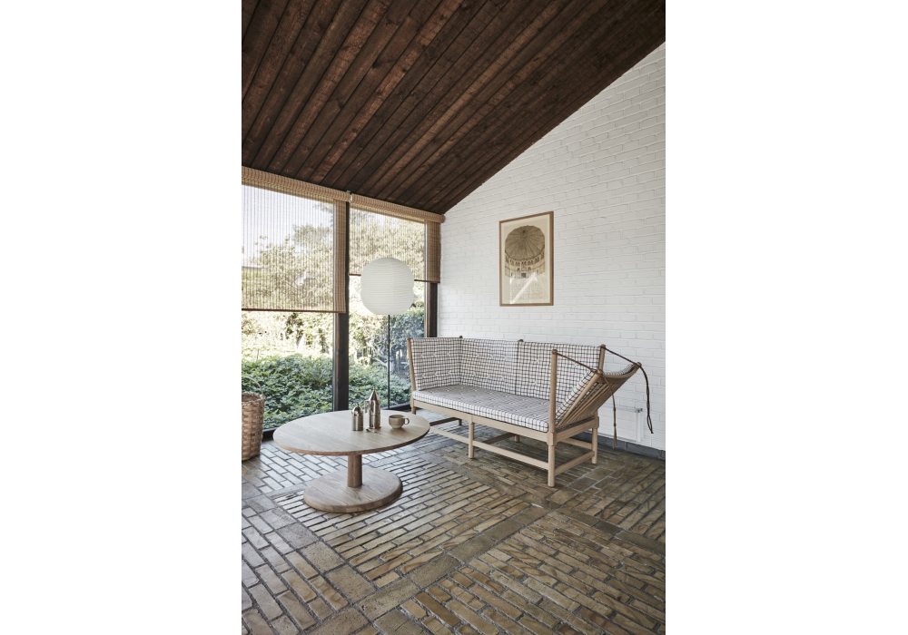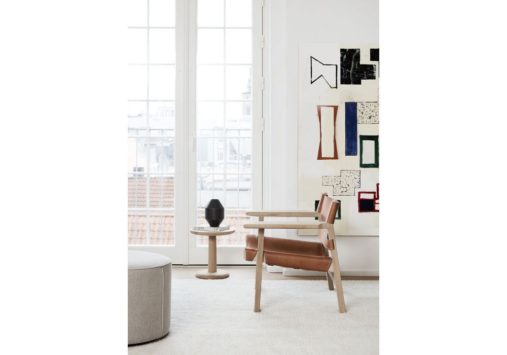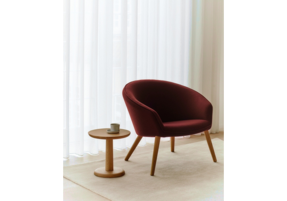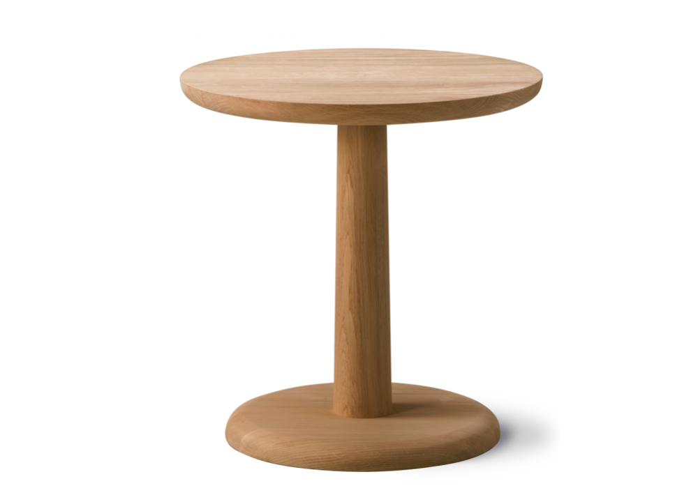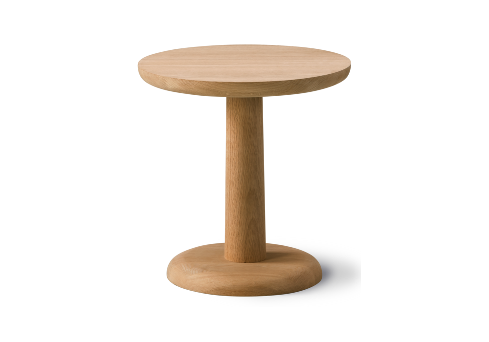Pon designed by Jasper Morrison for Fredericia is a occasional table made of solid wood in different sizes. Top, column and base are joined by steel tie rods.