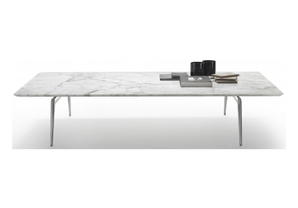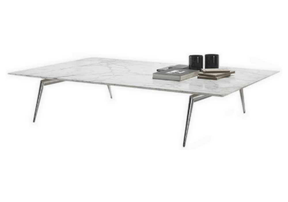 Este designed by Antonio Citterio for Flexform is a beautiful coffee table with metal feet available in multiple finishes and top made of wood or marble. Also available in multiple sizes. Este coffee tables are ideal for placement in front of the sofa.