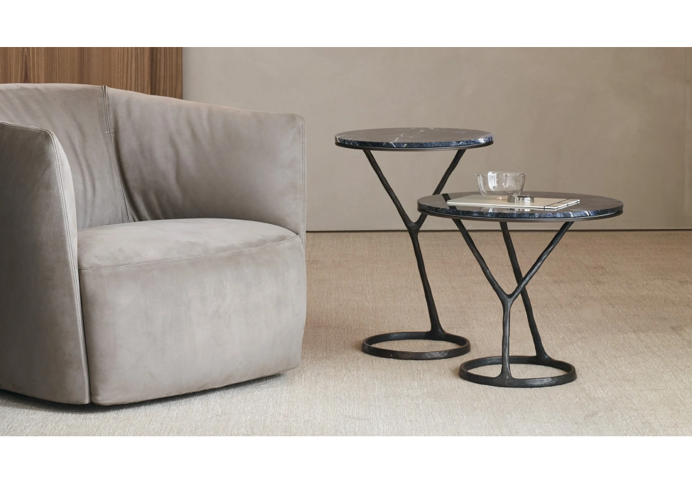 Ilda designed by Jean-Marie Massaud for Poliform is a coffee table made with a cast brass structure and marble top. Available in different finishes and dimensions.