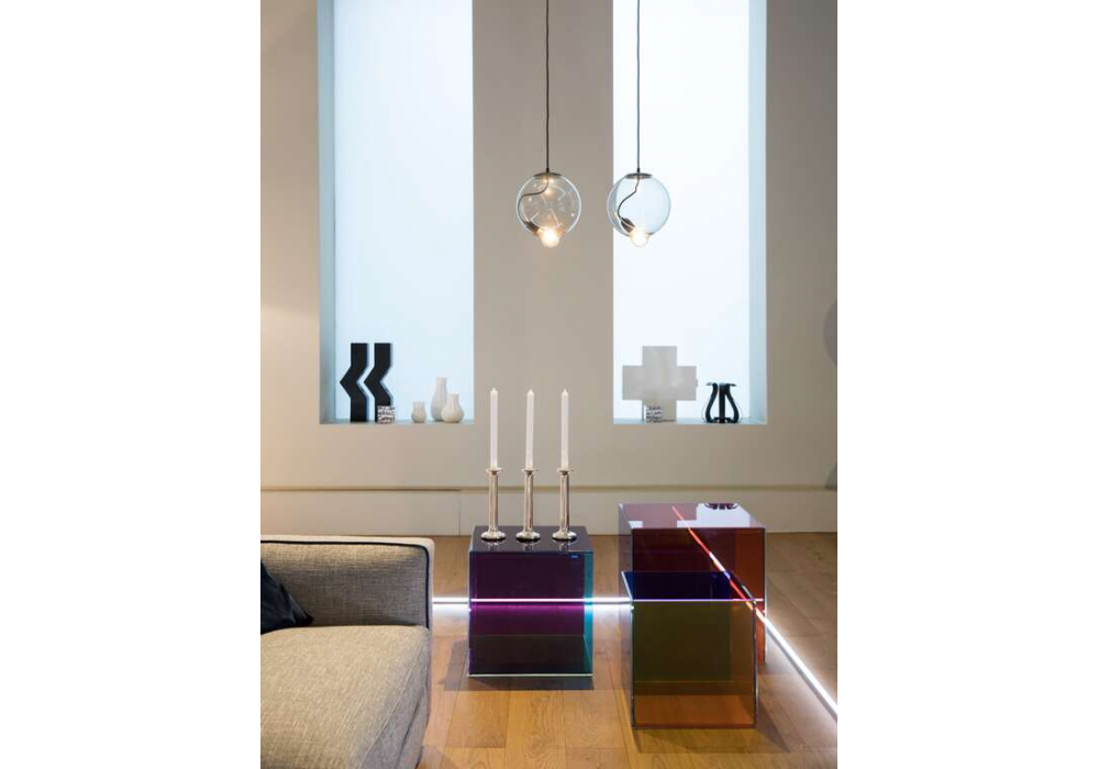 Luce designed by Giulio Cappellini & Antonio Facco for Cappellini is an occasional table experimenting with new possibilities of material in compliance with the simplicity of design. Volumes enhanced by transparency, colors and shades of refractions, made of extra-clear stained laminated glass. Available in 3 sizes.