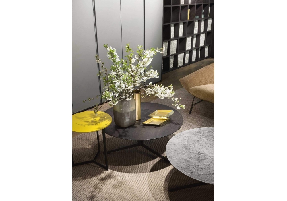 Oydo designed by Francesco Rota for Lema is a coffee tables collection available in different configurations and sizes. The top can be proposed in thermo treated oak, Portoro marble, Gray Stone, clay, polished or matt lacquer finish. Metal legs.