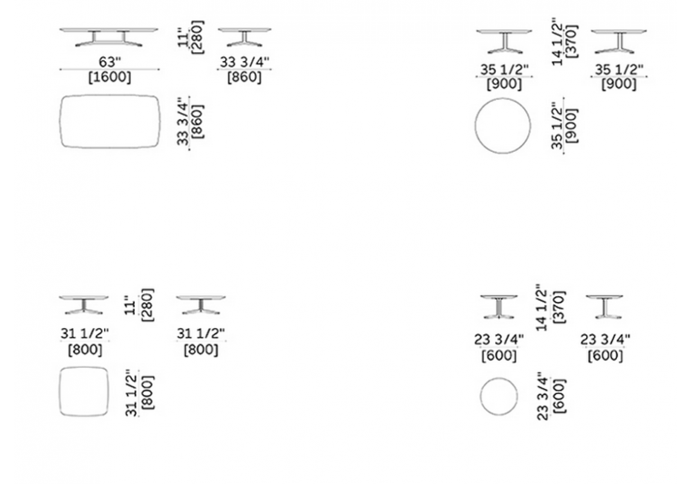 | Dimensions | - 160 x 86 x H 28 cm; - Ø 90 x H 37 cm; - Ø 60 x H 37 cm; - 80 x 80 x H 28 cm. |