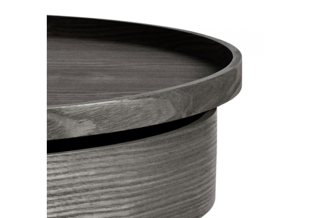 Turning Table designed by Theresa Rand for Audo Copenhagen is a coffee table made of wood, available in 2 different finishes: black stained ash/brass or white oak/black chrome. Turning Table offers an easy way to keep the living room nice and tidy: the compartment under the top can be used to store, for example, books and magazines.