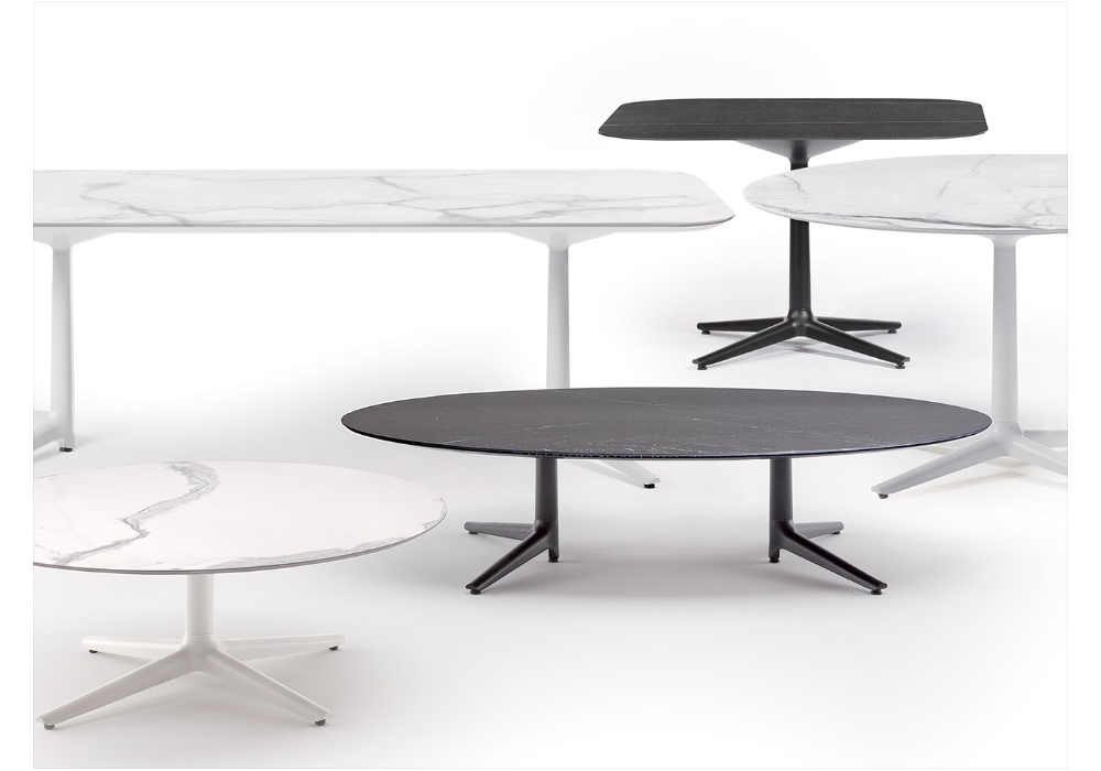 Multiplo Low designed by Antonio Citterio for Kartell is a small table made with glass or marble-finish stoneware top and die-cast aluminum structure matt painted in the same color as the top. Available in different dimensions.