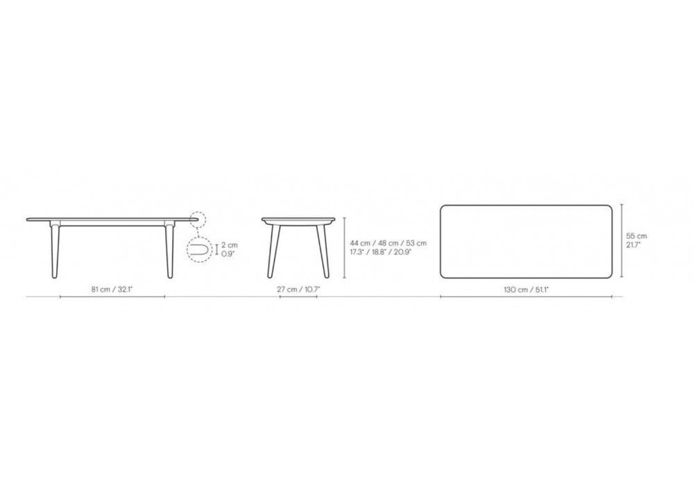 | Dimensions | 130 x 55 x H 44 cm; 130 x 55 x H 48 cm; 130 x 55 x H 53 cm. |