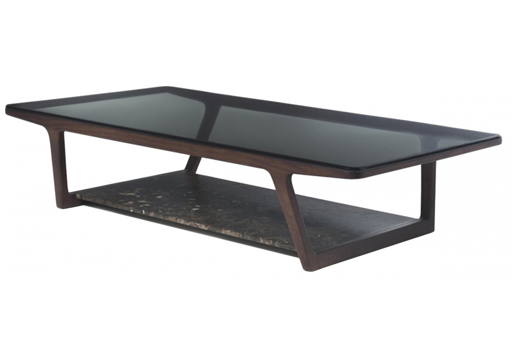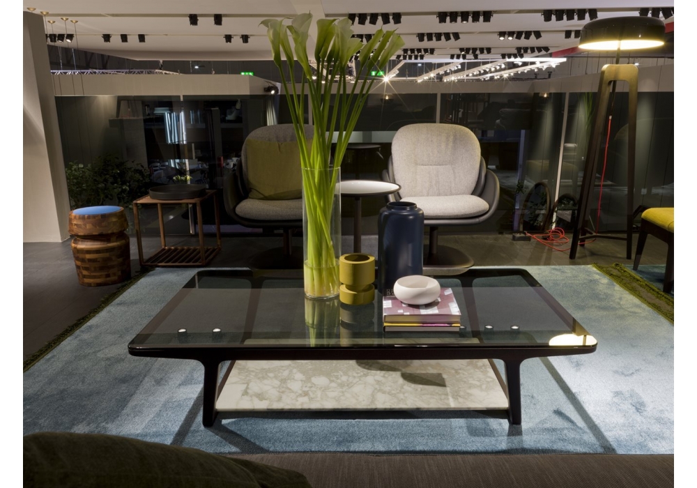 Script designed by Emmanuel Gallina for Porada is a coffee table with structure in solid ash available in different finishes. Lower top in marble and upper top in tempered smoked glass with rounded edges (thickness mm. 10).
