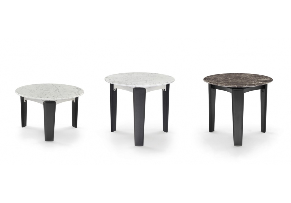 Tablet designed by Claesson Koivisto Rune for Arflex is an occasional table available in different dimensions. The top is made of marble or wood. Structure in white or black lacquered metal. Legs in stained ash wood.