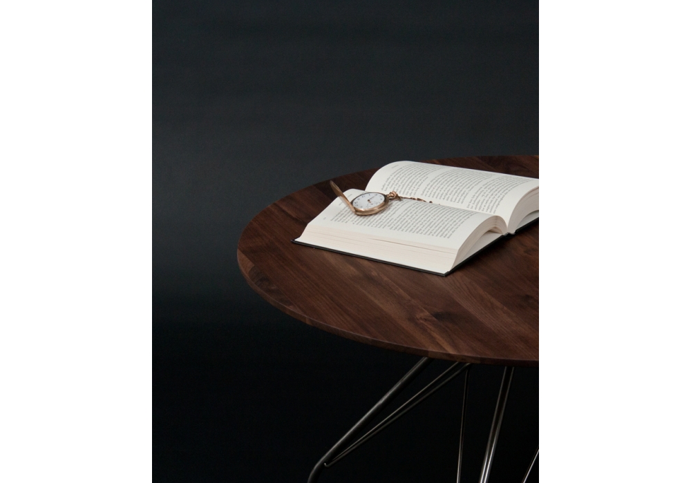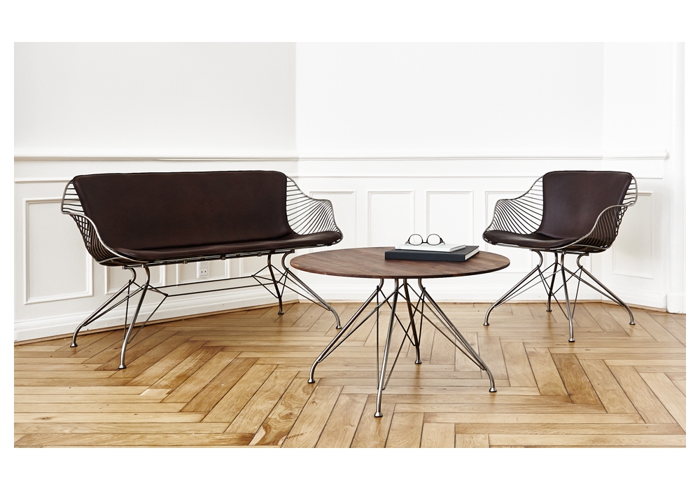 Wire designed by Overgaard & Dyrman for O&D is a coffee table with structure in either matt black powder coated steel finish or satin chrome plated steel finish. Wooden top available in oak or walnut finish.