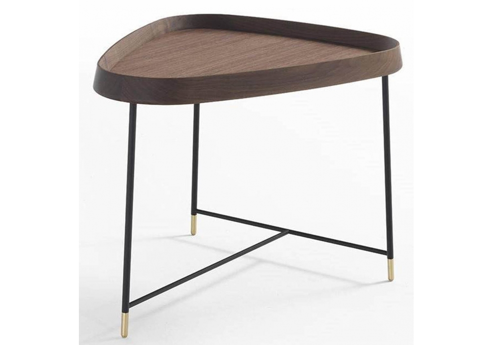 Fritz designed by Carlo Ballabio for Porada is a coffee table with base in matt black metal with brushed brass end-feet. Top in solid canaletta walnut or glossy lacquered available in different finishes. Frame of the top in solid canaletta walnut. Available in different dimensions.