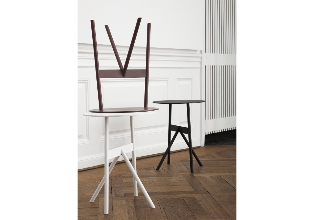 Stock, designed by Msds Studio for Normann Copenhagen is a coffee table, with tubular structure, and circular top entirely made of steel. Stock is powder coated available in four different finishes; white, wine, blue and black.