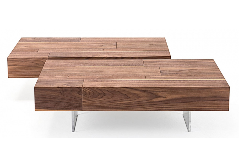 Lingotto designed by Paolo Cattelan for Cattelan Italia is a coffee table with top made of Canaletto walnut wood and feet in transparent methacrylate. Available in two dimensions.