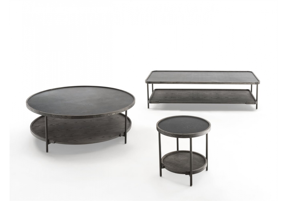 Jok designed by Staffan Tollgard for Porada is an occasional table with metal structure, wooden and stone tops. Available in three dimensions.