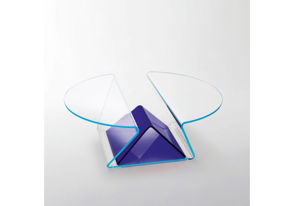 Plissé designed by Mario Bellini for Glas Italia is coffee table in 12 mm thick transparent extralight glass. The central element is available in different colors.