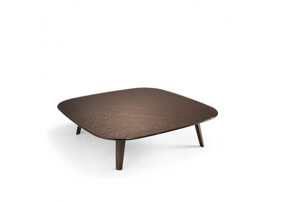 Magma designed by Patrick Jouin for Fiam is a coffee table with a top in fused glass, tempered and back-painted with semi-transparent, metallic or marble colours. Base in solid wood in tobacco or heat-treated black finish.