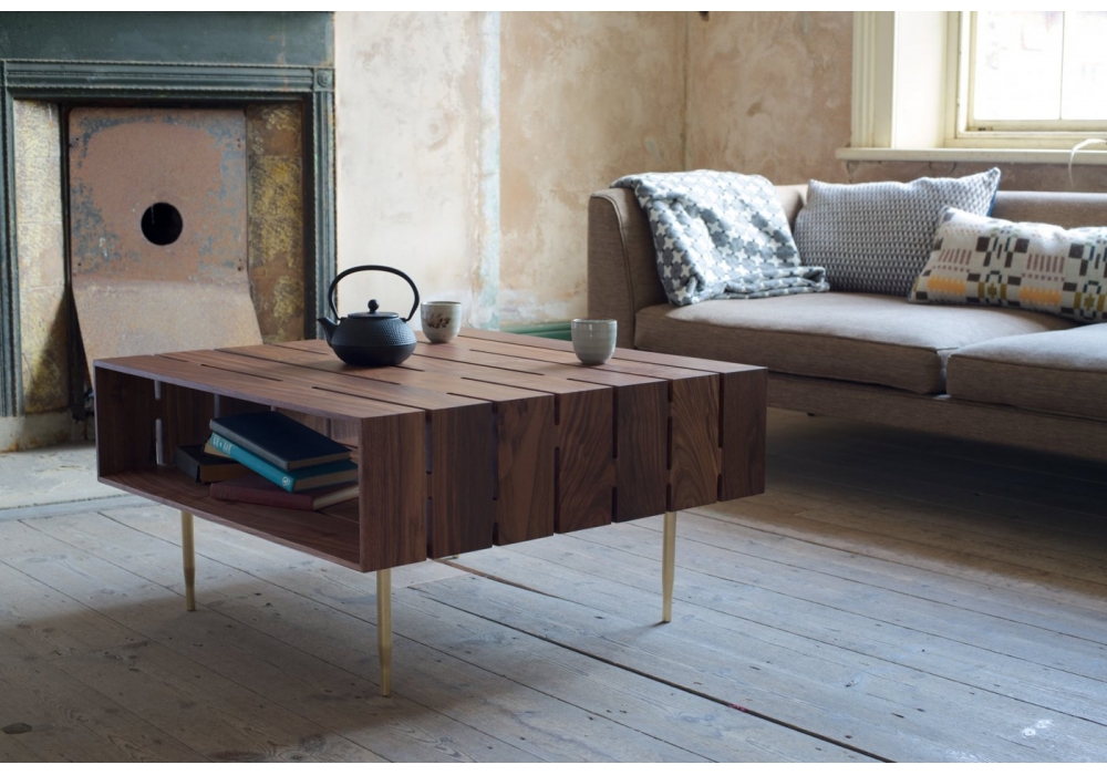 Horizon designed by Matthew Hilton for De La Espada is a coffee table made of wood available in different finishes and brushed brass feet. Also available in 2 sizes.
