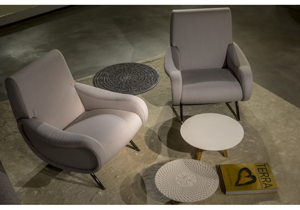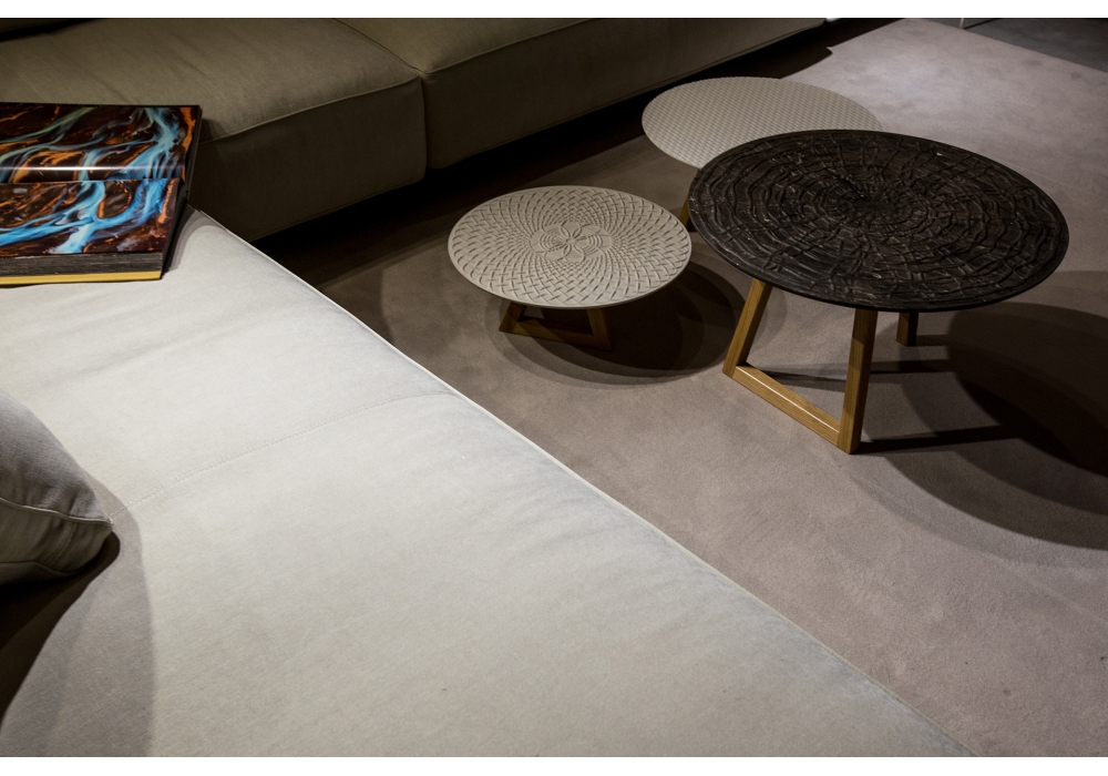 Tavolinichi designed by Marella Ferrera for Lithea is a coffee table with top made of marble or stone and wooden base. Also available in 3 dimensions.