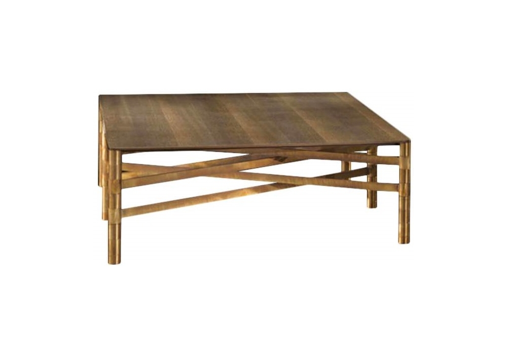 Network designed by Massimo Castagna for Henge is a coffee table made with a wooden or stone top. The legs are made of rounded metal tubes connected by rectangular metal bars that intersect each other. Network is available in different finishes and sizes.