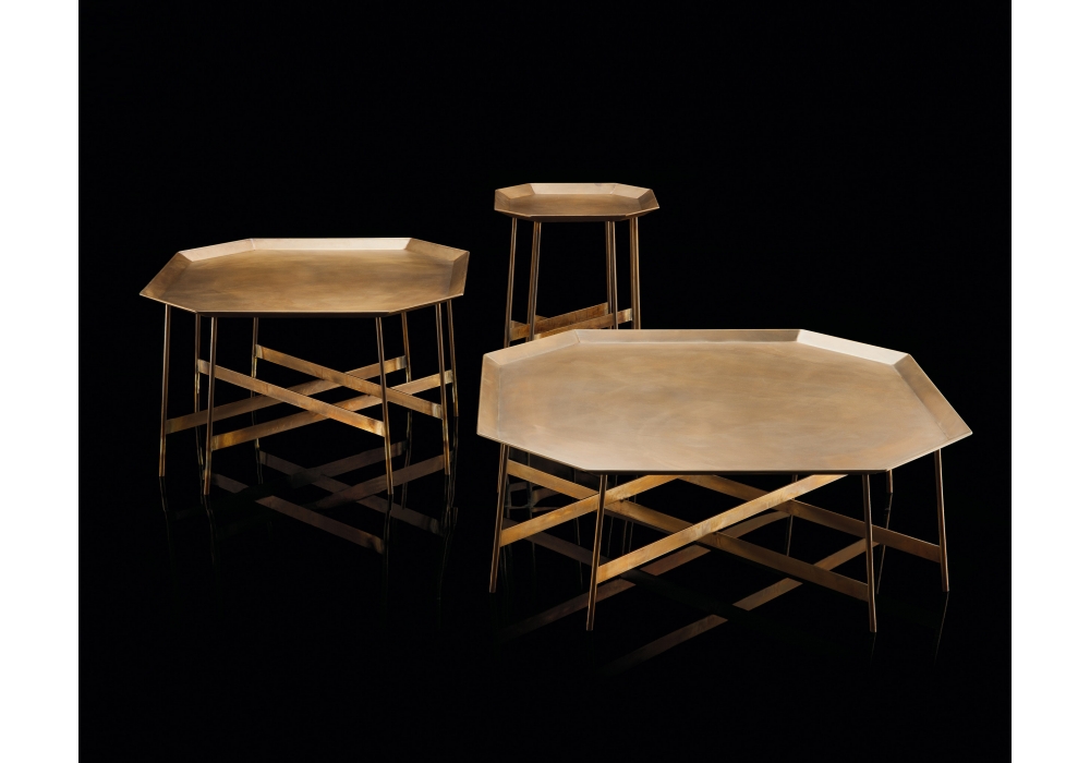 Octagon designed by Massimo Castagna for Henge is a coffee table structured by tubular legs supported by intersecting rectangular bars. The top, matching the legs, is octagonal in painted metal. Octagon is available in different sizes and finishes.
