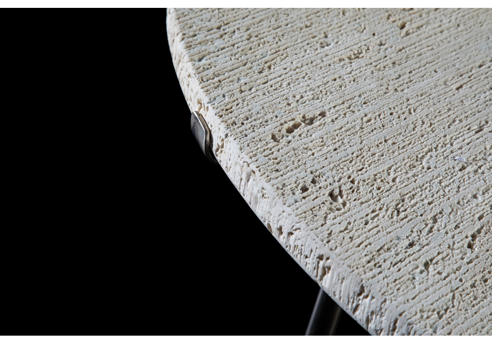 Primitive designed by Massimo Castagna for Henge is an occasional tables collection with top in stone. The frame is available in the following finishes: burnished Platino and burnished Titanio.