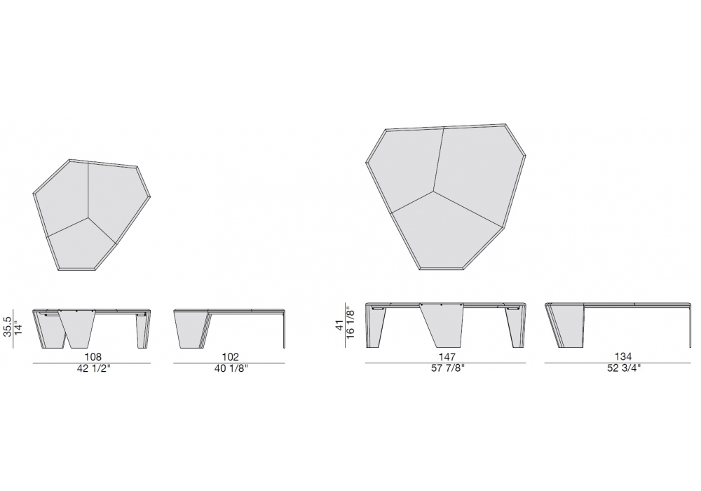 | Dimensions | 108 x 102 x H 35.5 cm; 147 x 134 x H 41 cm |