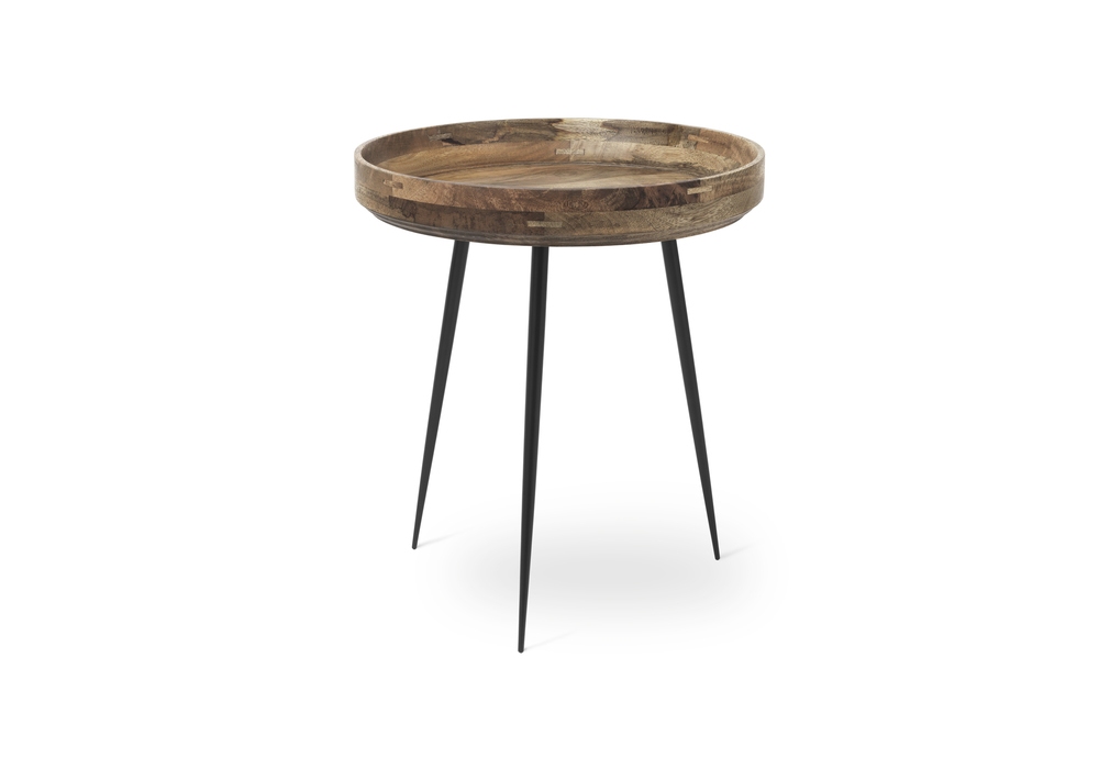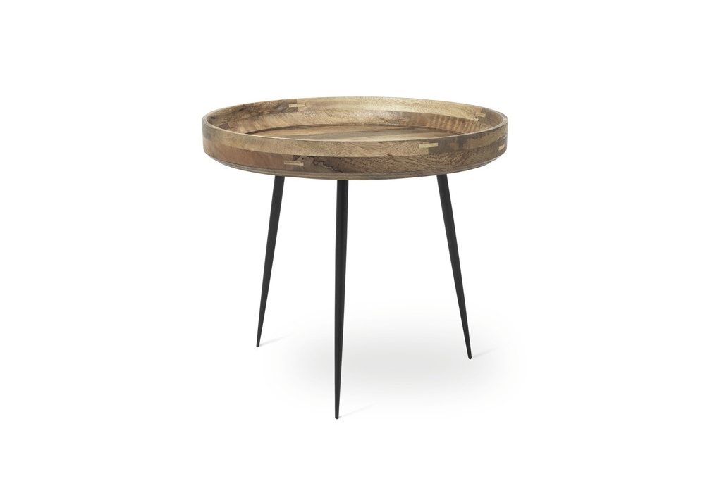Bowl designed by Ayush Kasliwal for Mater is a occasional table available in 4 dimensions. The table top, made of mango wood from eco-sustainable sources. Legs in black powder coated steel.