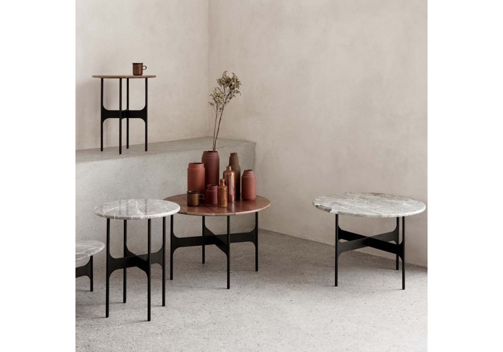 Floema designed by Luca Nichetto for wendelbo is a side table with black powder coated steel base and marble top. Available in different models.