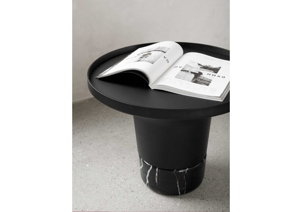 Poller designed by Oliver Schick for wendelbo is a coffee table with base in black powder coated aluminum and marble. Top made of black laminate. Available in 2 models.