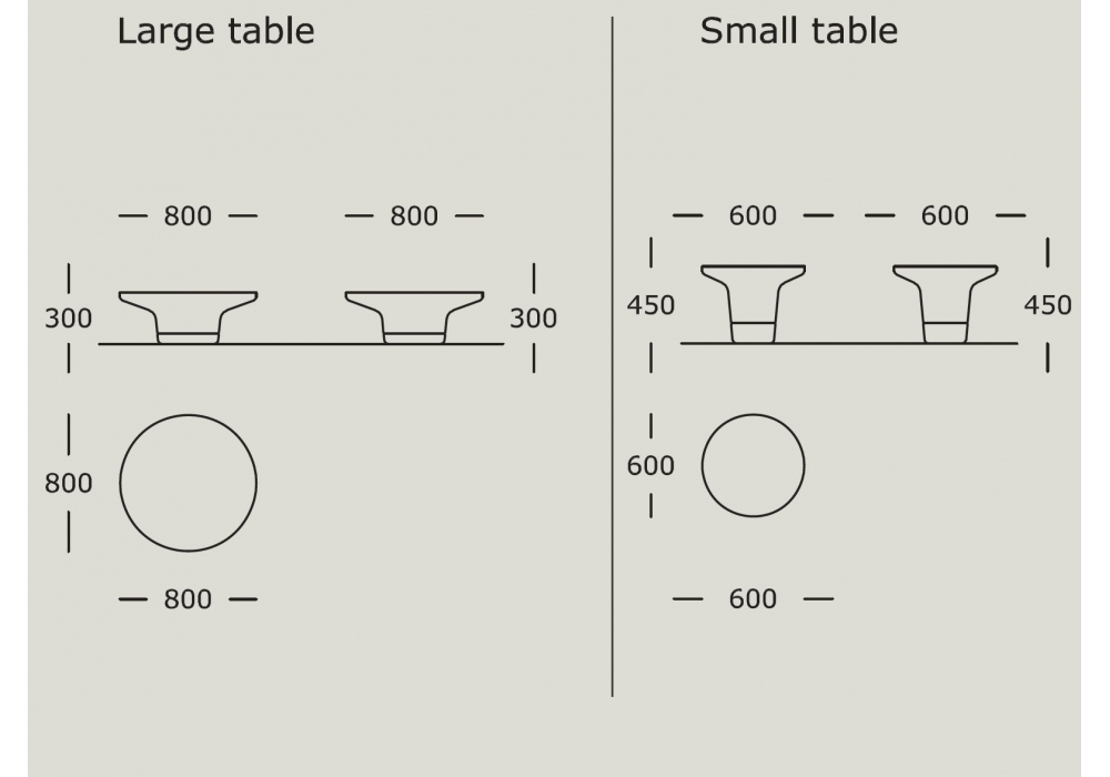 | Dimensions | ⌀ 60 x H 45 cm; ⌀ 80 x H 30 cm. |